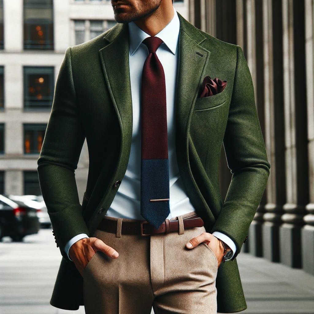 Conclusion: An olive or forest green sport coat is a statement garment that offers versatility and style. When paired thoughtfully with complementary colors and textures, it can form the centerpiece of an outfit that is both bold and refined. Whether dressed up for a formal event or styled casually for a weekend outing, this sport coat can adapt to various settings, making it a valuable addition to any wardrobe.